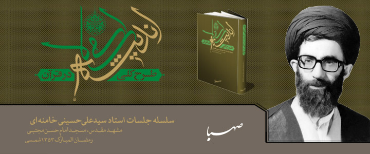 روزهای آخر تابستان 1353 ، امام جماعت مسجد کوچک و نیمه کاره ی امام حسن مجتبی ، در انتهای بازار سرشور مشهد ، با شروع ماه رمضان برنامه جدیدی برای مسجد می ریزد. سید علی خامنه ای ِ سی و پنج ساله ، با آن قد رشید و چشمان نافذش ، بنا می کند که هر روز ِ ماه مبارک ، بعد از نماز ظهر و عصر ، قرآن به دست ، پشت تریبون بایستد و یک ساعت با حرارت سخنرانی کند ، با موضوع " طرح کلی اندیشه اسلامی در قرآن".